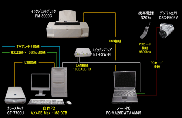 Inakamon の PC環境概略図 2004年03月07日現在 |